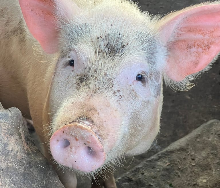 Our sanctuary rescues pigs, goats, sheep, and other farm animals from neglect and abuse. Every day, we demonstrate that animals are individuals with feelings, personalities, and the right to live freely—values that are at the core of veganism.